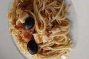 Coza o esparguete e escorra-o. Desfaça o atum em lascas. Numa tigela misture o sumo de limão, uma pitada de sal e pimenta.