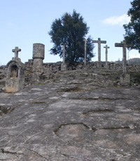 partia do Mosteiro. Entre este e o Calvário, e pelas ruas que os ligam, outros cruzeiros assinalam o percurso. Estas cruzes datam todas do início do século XVIII. No Calvário, o púlpito e as três cruzes