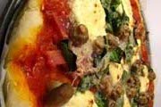 Retire o excesso de líquido dos espinafres. Espalhe tudo sobre a massa, cubra com as rodelas de tomate. Tempere com sal, pimenta e basílico. Espalhe a mozzarella e leve ao forno pré-aquecido a 220º C durante 30 minutos. | |  |
