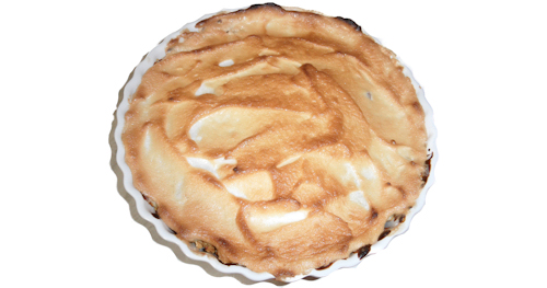 Retirar a tarte do forno e espalhar as claras por cima.